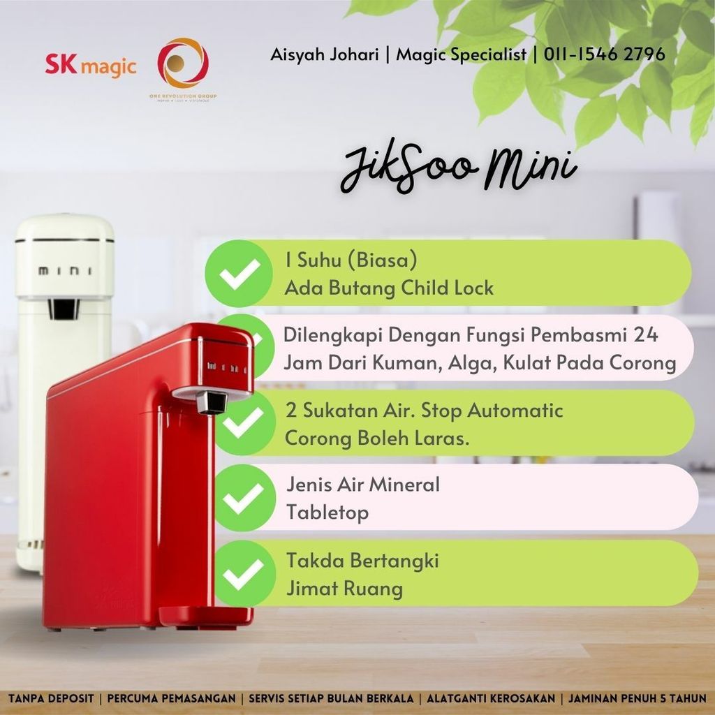 Suhu Ambien Sekali Sentuhan. Hanya selebar 9.2 cm, JIK.SOO mini tidak mempunyai tangki air. Tiada tangki, tiada pencemaran.
