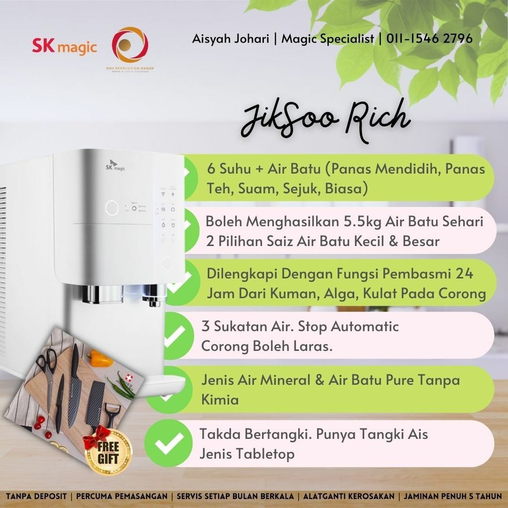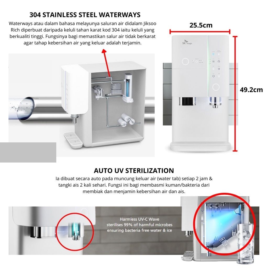 Anda mempunyai SK Magic JIK.SOO Rich dengan berbilang suhu digabungkan bersama dan ianya pilihan yang terbaik. Ais yang mendapat rawatan cahaya UV bagi memastikan ia bersih sepanjang masa.