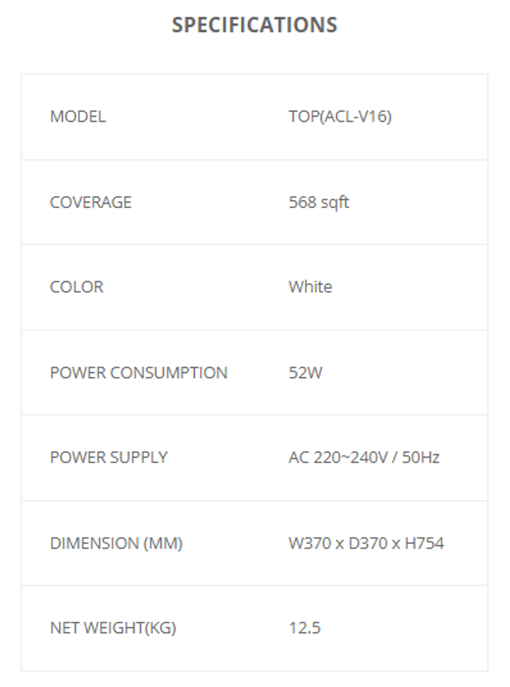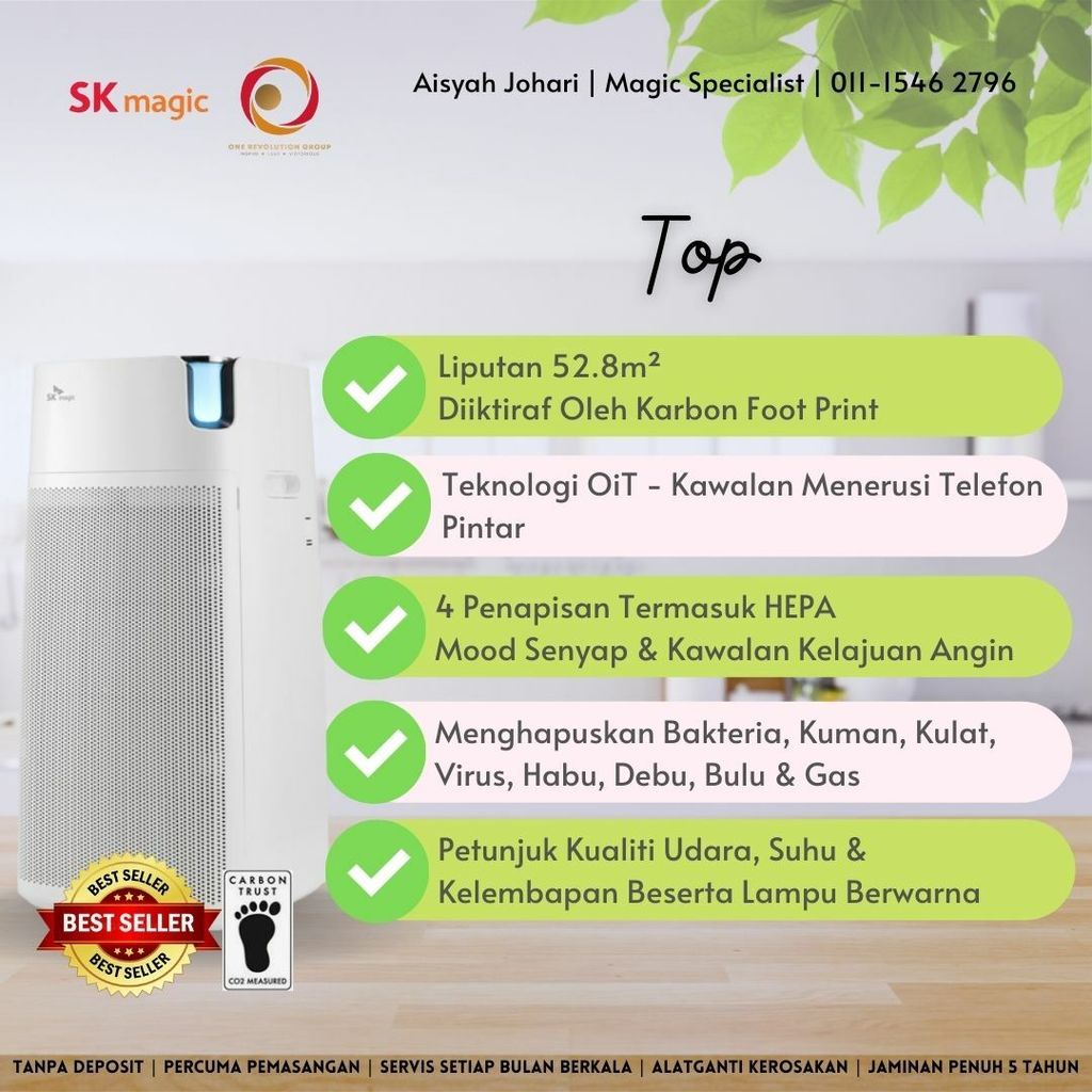 Penapis Udara yang diperakui Carbon Footprint dengan sistem A.I mengawal tahap pembersihan udara. 4 pengesan pintarnya dapat mengesan szrah halus, gas, suhu dan kelembapan. Padat dan Minimalis, rekabentuk langsing yang sesuai di letak di mana jua bilik mahupun sudut.
